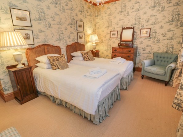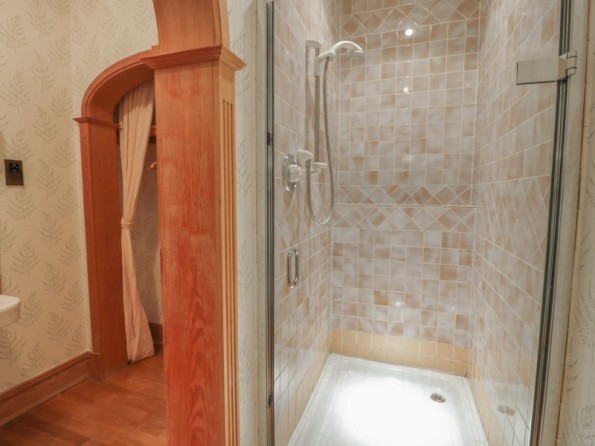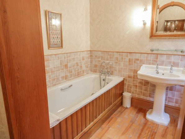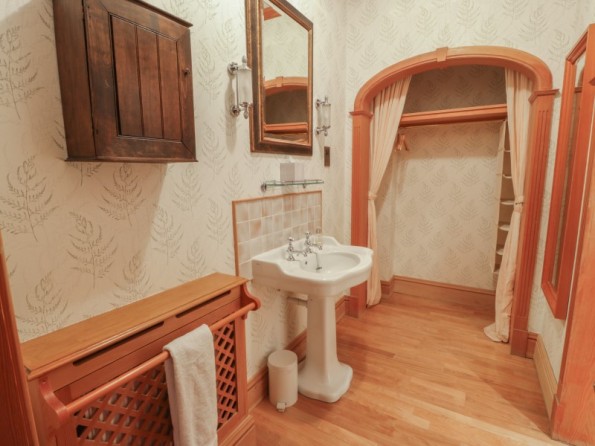 All ground floor. Four bedrooms: 1 x double with en-suite bath, hand-held shower, basin and WC, 1 x double with walk-in shower, basin and WC, 1 x twin with en-suite bath, hand-held shower, basin and WC, 1 x twin with walk-in shower, basin and WC. Cloakroom with basin and WC. Kitchen/diner. Utility. Sitting room with open fire