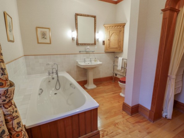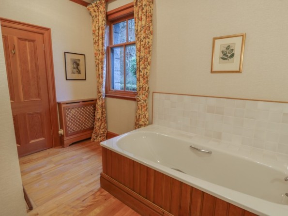 Creag Bhalg is a ground floor cottage resting in Braemar in Aberdeenshire. Hosting four bedrooms: a double and a twin with en-suite bathrooms, a double and a twin with en-suite shower rooms, along with a cloakroom, this property can sleep up to eight guests. There is a kitchen/diner, utility and a sitting room with an open fire. To the outside, there is a shared garden and pond, as well as access to Mar Lodge Estate, while off-road parking is available. Creag Bhalg is an elegant holiday home for a large family to indulge in luxurious accommodation.
