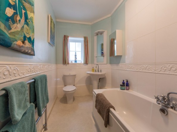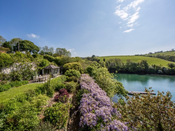 Reverse-level layout. Five bedrooms: 1 x first floor (entry level) bedroom with king size bed and en suite, bath with shower over, bidet, WC and basin and its own balcony looking the walled garden and creek, heated towel rail and WC, 1 x ground-floor kingsize overlooking the water, 1 x 6ft king size bed overlooking the water with en-suite and dressing room, 1 x ground-floor twin with vanity basin and door to outside area, 1 x childrens room with bunk bed and single bed. Ground-floor bathroom with bath, shower over, basin and WC. First-floor cloakroom with basin and WC. First-floor kitchen/diner. First-floor utility. First-floor living/dining room