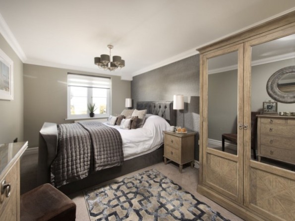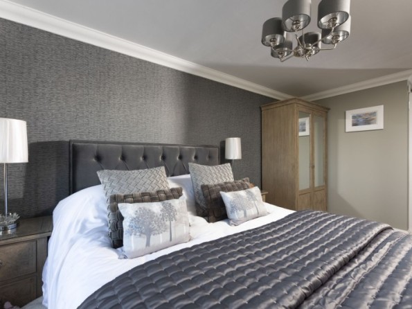 The spacious master suite features its own en-suite shower room and is furnished with a king size TV bed with luxury Relyon mattress. The room has also been furnished with a large, freestanding wardrobe with mirror doors, bedside tables with lamps, a mirror and a chest of drawers.