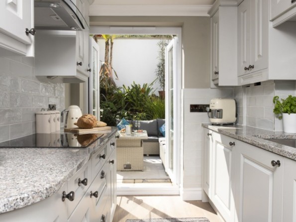 The separate galley kitchen has been uniquely designed for the property and features granite work tops and plenty of storage. There is an electric fan assisted double oven as well as an electric glass hob, a microwave, fridge, dishwasher, freezer, washing machine and tumble dryer.