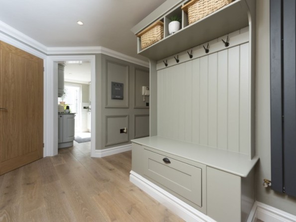 The apartment's spacious entrance hall has a roomy bench seat and coat stand with storage for shoes, keys and accessories.