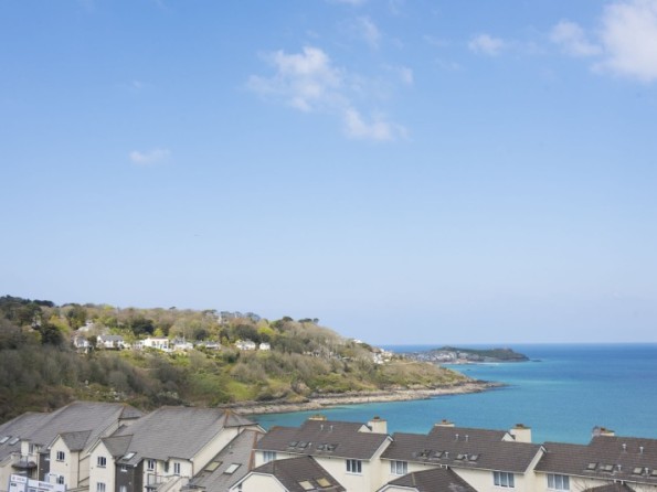 This ground floor apartment has a large front communal terrace to the front, with incredible views over Carbis Bay and out to sea. This area can be used any time of the day as a wonderful spot to enjoy a good book or to watch the changing moods of the bay beyond.