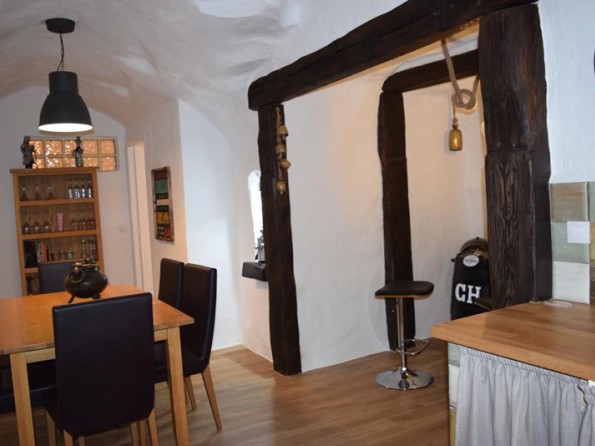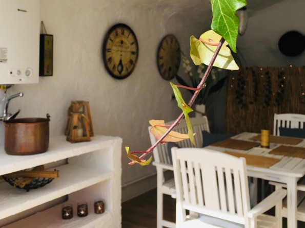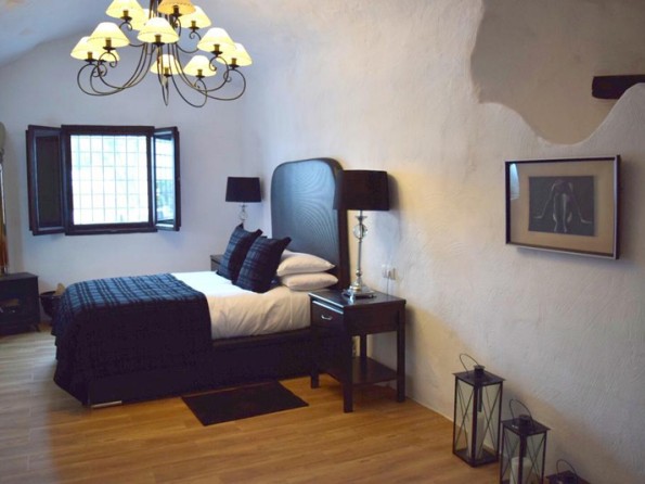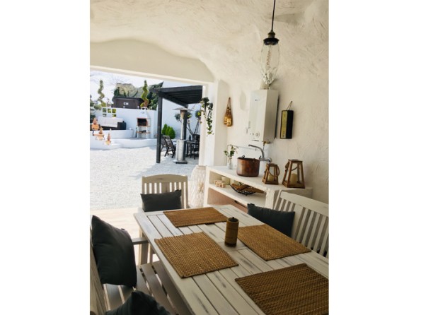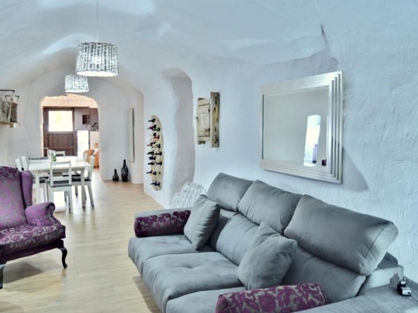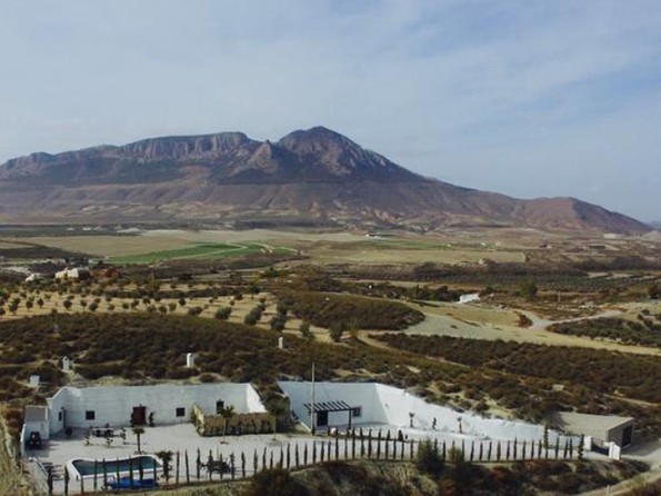 This is cave dwelling with a contemporary twist! Renovated throughout there are some wonderful features in the cave house. The walls are an indication of the history of the caves - in the master bedroom you can see where the water level used to be millions of years ago when the whole Altiplano was underwater, and in the living room you can see the shells, fossils and crystals among the layers of rock in the walls. Cueva Helena is in the north of the Granada Province in the village of Benamaurel. It is in the Baza region of the Altiplano of Granada, 723 metres above sea level. The area is reminiscent of Tolkein’s ‘Hobbit’ landscape, with many dwellings being caves, carved out of the rock face.