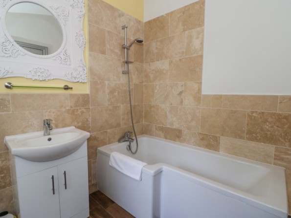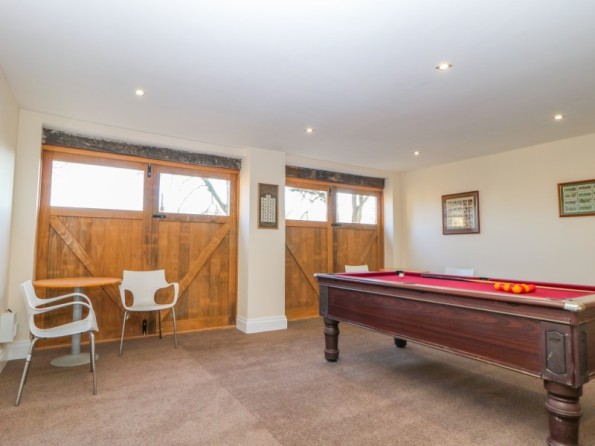Four bedrooms; 2 x king-size bed with an en-suite, with walk-in shower, basin and WC, 1 x king-size, 1 x ground-floor double (zip/link beds, can be made into twin on request). Bathroom with shower over bath, basin and WC. Ground-floor bathroom with shower over bath, basin and WC. Kitchen/diner. Sitting room with woodburning stove. Game/bar room. Conservatory. Utility.