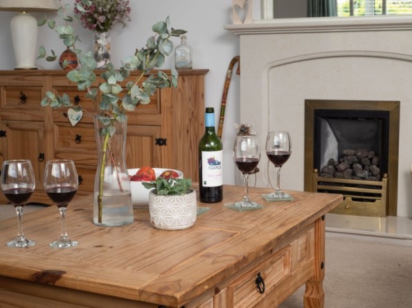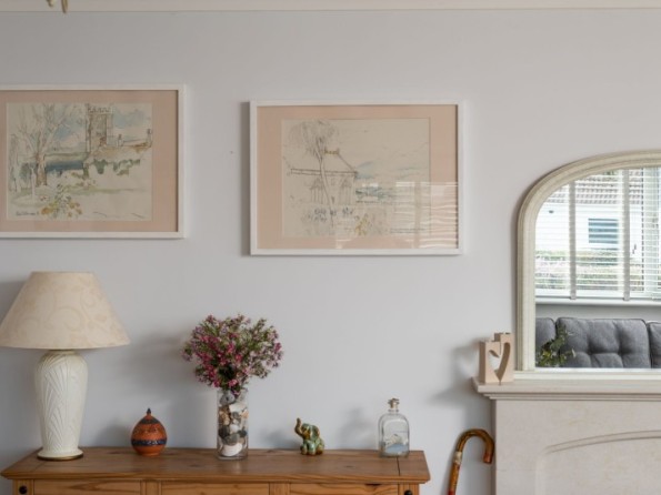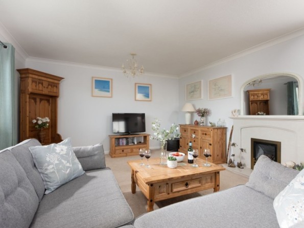 Located just off the entrance hall, this room has a lovely double aspect outlook over the front garden and is furnished with a large corner sofa, a TV cabinet with Smart flat screen TV (Freeview), a Wii console, a coffee table, display cabinet, sideboard and fireplace with gas fire