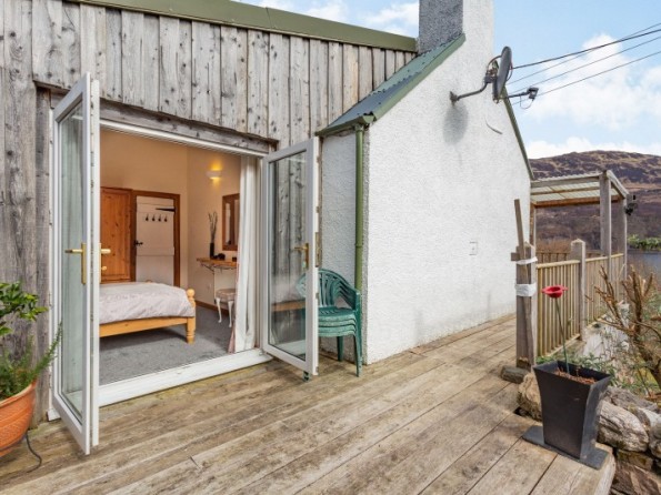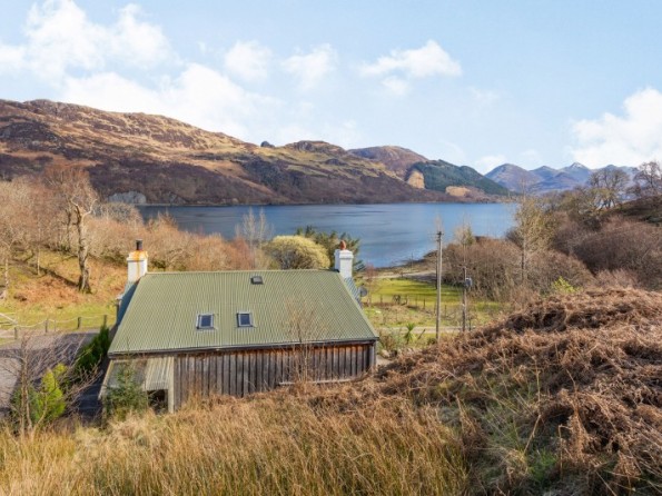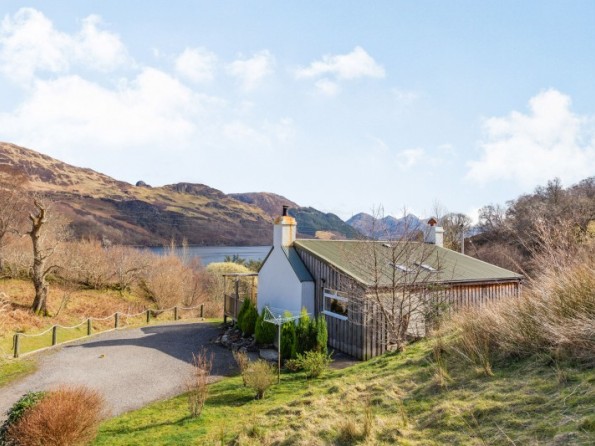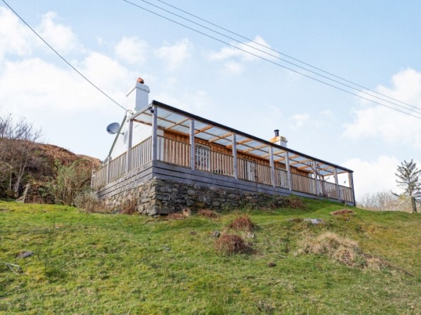 Charming cottage nestled on a pretty hillside. Overlooks beautiful Loch Duich to mountains beyond. Large covered balcony to front. Cosy and welcoming with woodburner. Kyle of Lockalsh 9 miles.