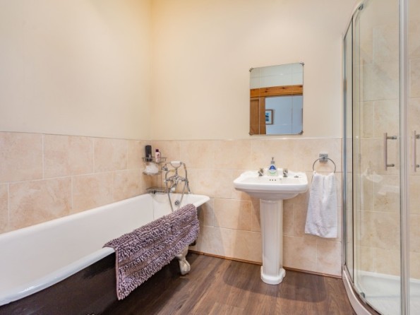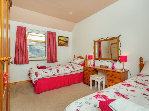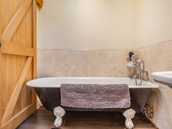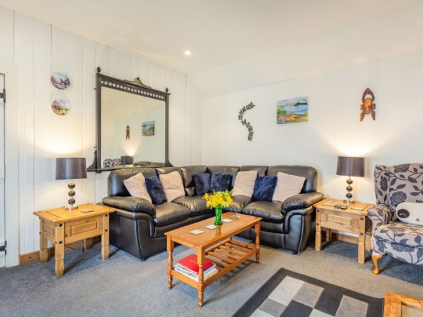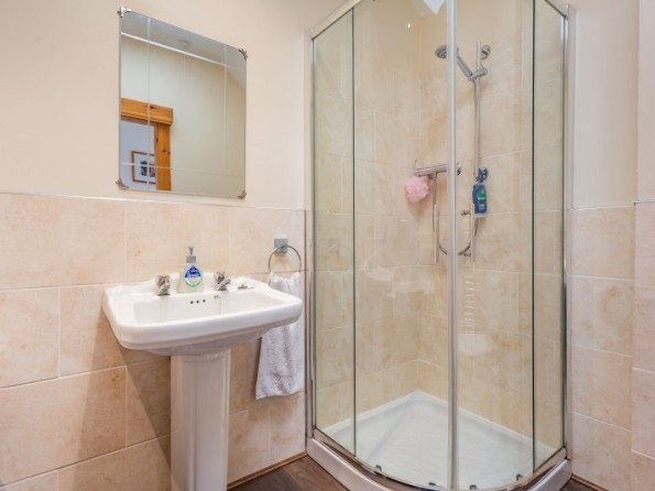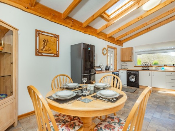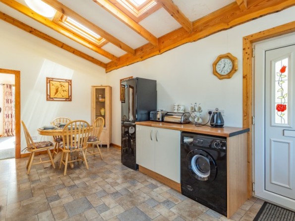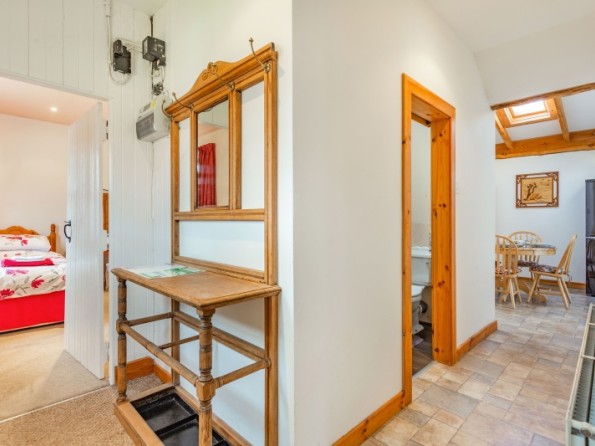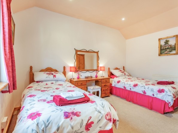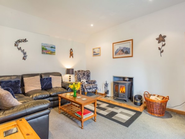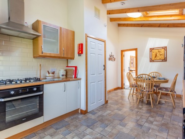 All ground floor. Two bedrooms: 1 x double, 1 x twin. Bathroom with roll-top bath, separate shower, basin and WC. Kitchen with dining area. Sitting room with woodburning stove.