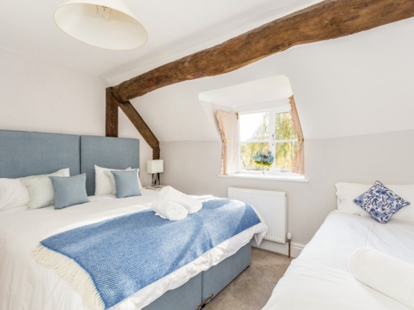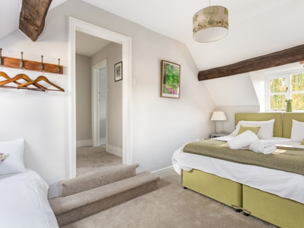 The barn has four bedrooms and comfortably sleeps eight, with an additional three single beds in three of the bedrooms allowing you to accommodate up to 11 in total. There are two bathrooms, one with a bath / shower and one with a large walk in shower. Three of the four bedrooms have super king beds, and the fourth is a king. The living room has stone mullioned windows looking out to gardens, comfortable seating, a woodburner, TV with Netflix, Amazon and other app channels, and a mix of adult and children’s games and books. There’s a second reception room, the Snug, with french doors leading out to the garden, another TV, and table football. The kitchen / diner has an electric hob and oven, microwave and dishwasher, and is fully equipped with all you need. There’s seating for up to 11 around the dining table. Also on the ground floor is a downstairs loo and a large utility room (with door to the garden) with American fridge freezer, washing machine and tumble dryer. There is superfast wifi throughout.