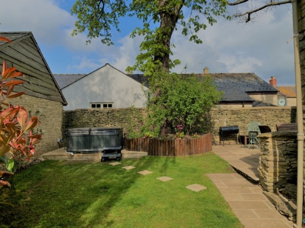 The house has a south westerly facing enclosed walled garden. The patio has a large table, chairs and BBQ and there’s a private hot tub. Parking on the lane outside the front door and garden gate.