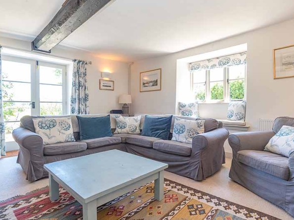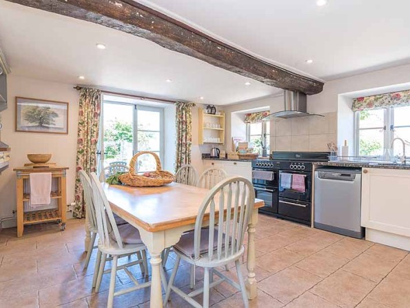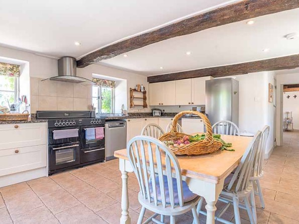 Inside of Eagles Nest the aged wooden beams which stretch over this otherwise modern and up-to-date property. The owners have been careful to renovate the place thoroughly but delicately so that guests can enjoy the best of both worlds. The style is bright during the day but will quickly become cosy at night as guests recline on the comfortable and spacious sofas in the sitting room in front of a log burner fire. The property can sleep six people comfortably and has three double bedrooms with zip and link beds which can be made into two singles or one super king size bed as required. The main bathroom has a bath with an overhead power shower and two of the bedrooms are en-suite. There is a downstairs WC as well and a utility room with washer and dryer. The bright and spacious kitchen is fully up-to-date with all the necessary appliances and the dining table can seat up to ten people. The house has a TV with Freeview and DVD and has telephone and Wi-Fi.