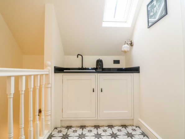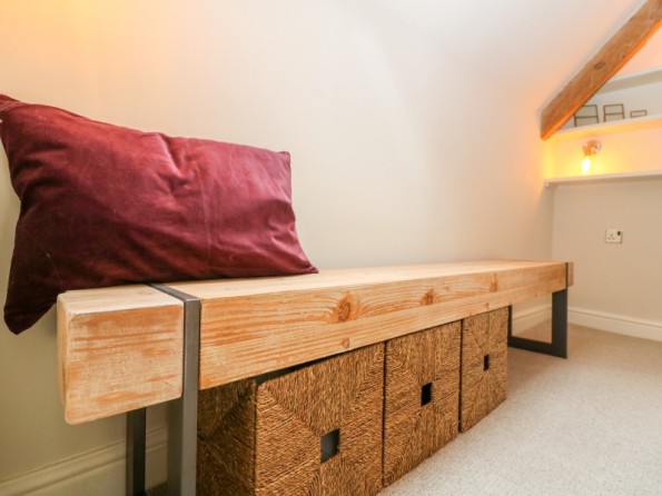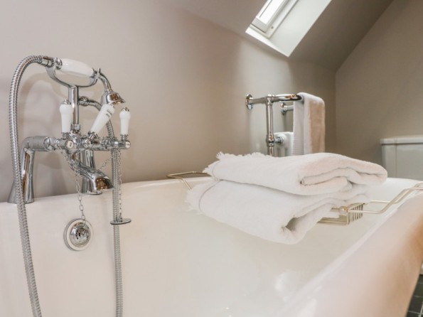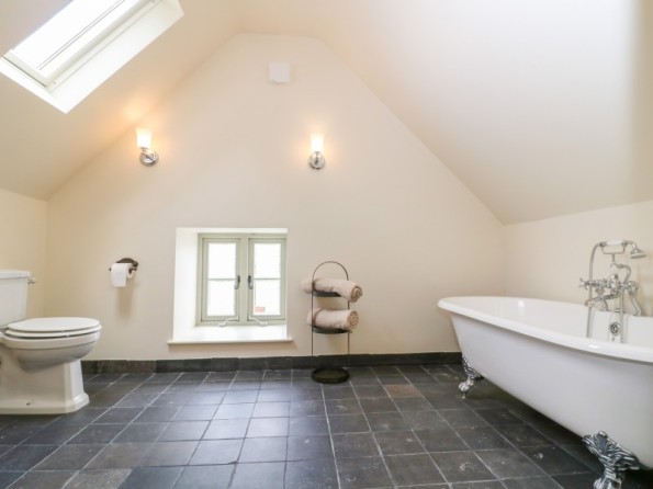 Main cottage Three bedrooms: 1 x super-king-size with en-suite bath, walk-in shower, basin and WC, 1 x king-size and 1 x double. Bathroom with shower, basin and WC. Annexe - 1 x ground-floor with king-size bed accessed via a staircases is a bathroom with bath, basin and wc. Please note; All bedding is feather filled. Kitchen, dining area and sitting area. Sitting room with woodburning stove.
