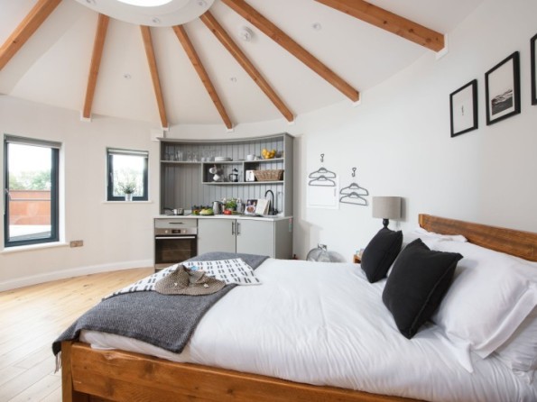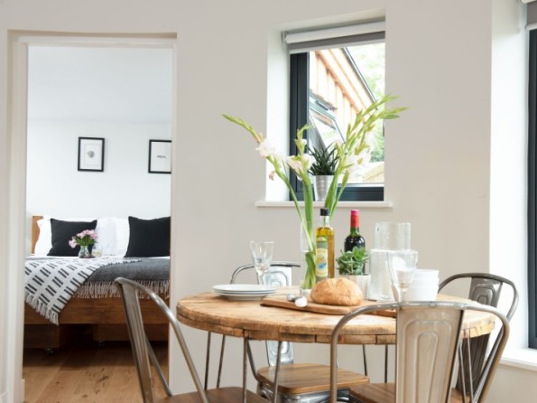 This property has underfloor heating and one main open-plan space where the master bed and kitchen / diner are found. There is a second separate double bedroom and a lovely separate bathroom