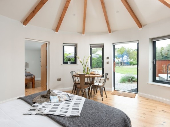 Set within the rural outskirts of Bude but within just a short drive from some of the area’s best beaches, this is the laid-back Cornish lifestyle at its best. One of a collection of beautiful sedum-topped roundhouses within the East Thorne glamping resort, the uniquely designed Ebb is a gorgeous, light-filled two-bedroom dwelling that’s perfectly suited to families and groups of couples looking to enjoy a relaxing escape away from the pressures of everyday life.