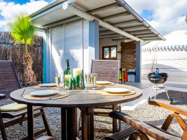 The yurts enjoy a private south-facing terrace and garden that is fenced and gated and kitted out with sun loungers, a BBQ and teak dining furniture. Here you can relax and enjoy the wonderful views. All guests have shared use of a solar-heated swimming pool and chill-out area with a Polynesian-style daybed. Communal facilities include a covered, open room with hardwood floors, a fully-equipped kitchen, a dining area, authentic Moroccan floor seating and an on-site honesty shop selling things like pasta, charcoal, milk, washing powder and local products. There are also animal enclosures and a children’s play area. Guests are free to help themselves to eggs from the free-range hens.
