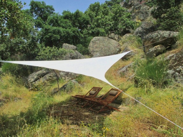 The porch and terrace has lovely views of the surrounding countryside. The back terrace has a BBQ and dining table and sweeping mountain views. There is a wonderful outside double bed with a canopy for sleeping out on balmy summer nights. There is a path to the pool where Roman steps lead you into the crystal clear water. We have made paths for easy walking, particularly to the highest parts of the finca where there is an olive grove and many traditional stone shelters, chozos, also plenty of springs and ponds, perfect picnic spots. The hike to the top is rewarded by wonderful views.