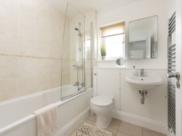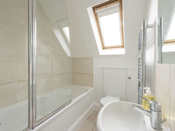 Located on the second floor, the family bathroom includes a bath tub with glass shower screen and head shower over, wash basin, heated towel rail, WC, mirror, shaver point and hairdryer