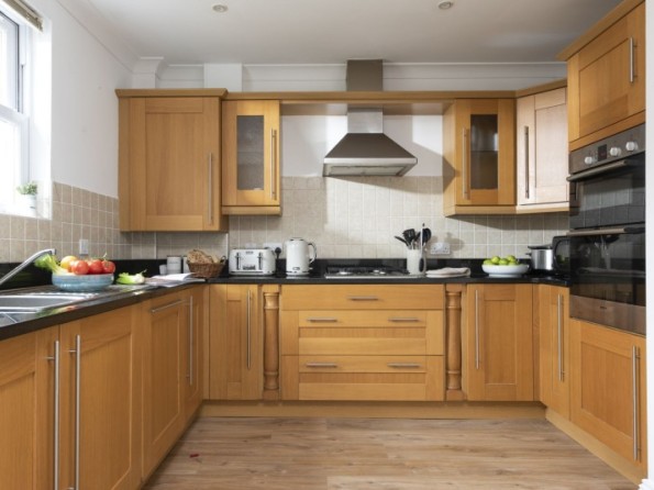 The separate kitchen is well-equipped and has plenty of overhead and under counter storage. The range of appliances include an electric, fan-assisted oven and grill, a gas hob, a fridge and freezer, dishwasher, microwave, toaster, kettle and cafetiere