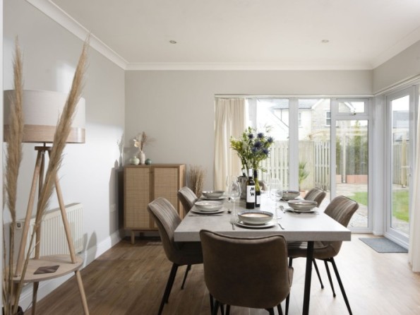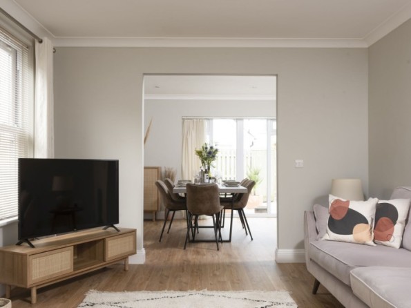 Calming neutrals and plush soft furnishings adorn the home’s social spaces, where mid-century inspired pieces of furniture add a luxuriously comforting atmosphere. An elegant living room flows effortlessly into the dining area to create an inviting place that’s perfect for both spending time together in, as well as for sharing hours of conversation over a home-cooked feast. Five beautiful bedrooms offer a spacious sanctuary for guests to retreat to after days spent exploring the sandy stretches at Porthkidney Sand and Hayle Estuary, with the decadent first floor master suite boasting its own bathroom and dressing room, and a further two bathrooms meaning space for all.