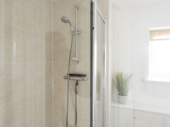 The en suite to the Master Bedroom is located on the first floor and features a shower cubicle, heated towel rail, hand basin and cabinet, mirror and WC
