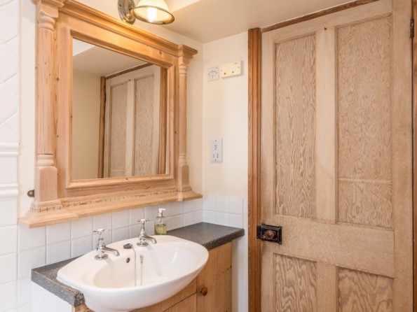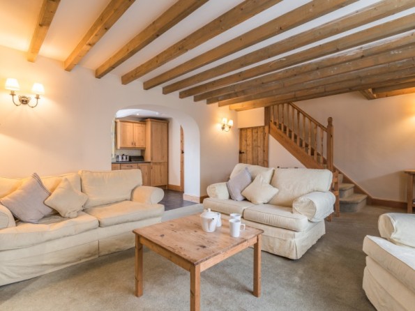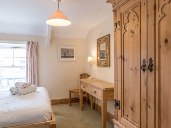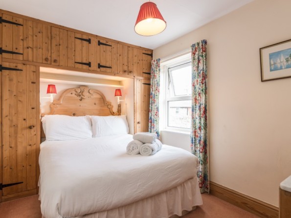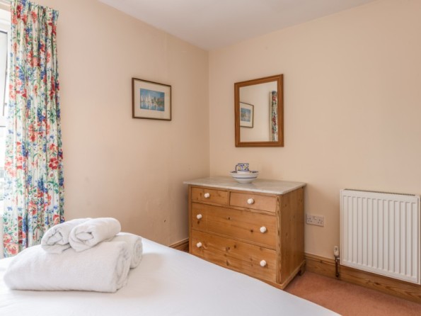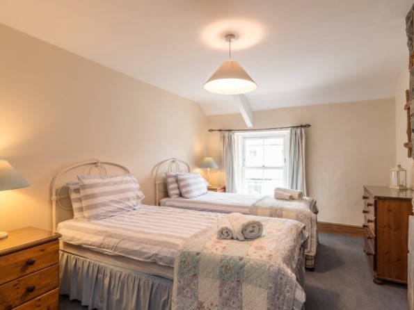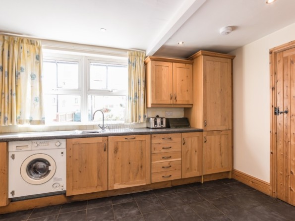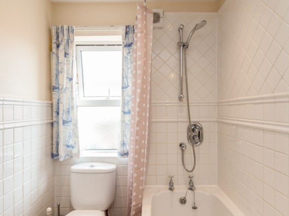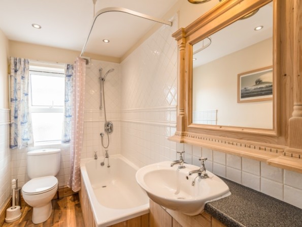 Three bedrooms: 2 x double, 1 x twin. Bathroom with bath, shower over, basin and WC. Kitchen. Spacious sitting room with electric living-flame fire and dining area.