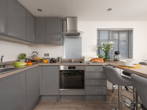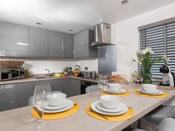 Fully equipped with a range of appliances including a single fan-assisted oven and grill, microwave, fridge (with small freezer compartment), Dolce Gousto by De'Longhi coffee machine (a few pods will be provided but guests are asked to bring their own), kettle, toaster, iron / ironing board and vacuum cleaner