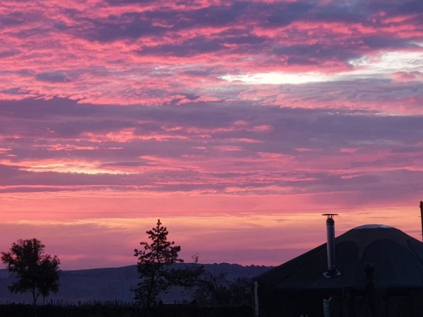 The site is home a small collection of yurts, all of which have log burning ovens, double beds made up with top quality bedding, rustic handmade furniture, tables and chairs. Solar fairy lights cloak the interior and lamps and candles are provided. You will also find a good selection of pots, pans, crockery and cutlery and each yurt includes a wind up torch, a wind up radio and a selection of games and books. Each yurt has a private eco loo. The washrooms with flushing loos and wetroom style shower rooms, wood fired sauna and ‘Shepherds Rest’ our wellness treatment room are all just a short stroll away. Foxglove Yurt is one of the larger yurts and can sleep up to 5, equally lovely and spacious for two as the beds pack away or turn into comfy sofas. The yurt can sleep a double and up to 3 singles whilst still leaving room for your dining area.