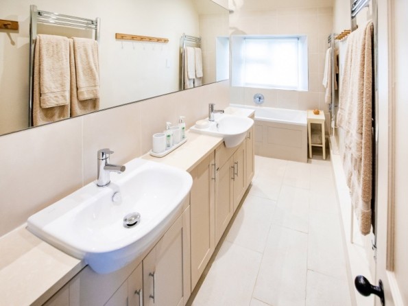 Three bedrooms: 1 x super-king-size (zip/link, twin on request), 1 x super-king-size, 1 x ground-floor adult bunk beds. Ground-floor shower room with walk-in shower, basin, heated towel rail and WC. Bathroom with bath, shower over, double basin, 2 x heated towel rail and WC. Kitchen/diner. Sitting room with open fire. Snug with TV - You will be able to log in using your own accounts.