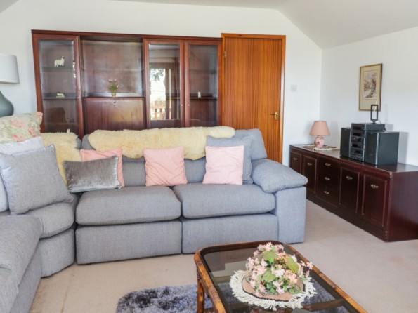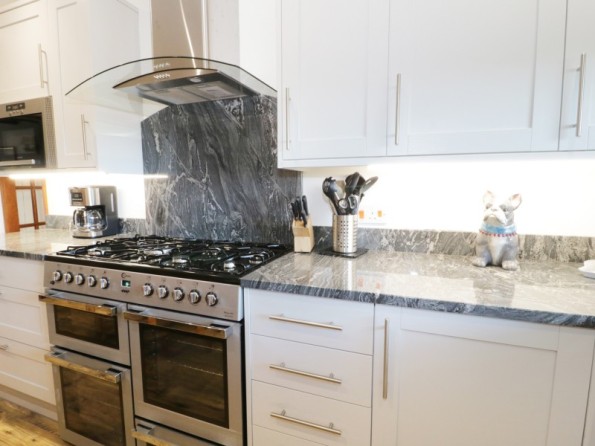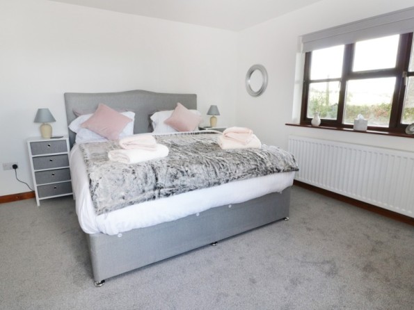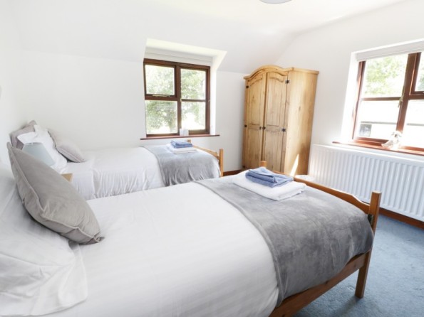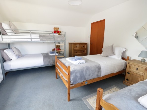 Five bedrooms: Bedroom 1 - 1 x super king size bed with ensuite bathroom, Bedroom 2 - 1 x king size bed, Bedroom 3 - 2 x single beds and 1 x bunk beds, Bedroom 4 - 2 x single beds, Bedroom 5 - 1 x single bed. Two extra easy to put up beds are available on request. Bathroom with bath, hand-held shower, a large separate walk in shower, basin and WC. Kitchen/diner. Dining room. Ground floor sitting room with woodburning stove. First floor sitting room with balcony. Utility with toilet. Ground floor cloakroom. Back porch/mud room