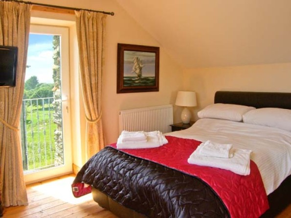 Four bedrooms with TV: 1 x double with Juliet balcony, 1 x ground floor double, 1 x twin, 1 x ground floor twin. Bathroom with bath, shower over, basin and WC. Ground floor shower room with double shower, basin and WC. Open plan living area with kitchen, dining area and sitting area with multi-fuel stove. Conservatory.