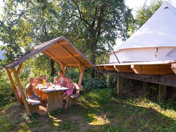 The tents have their own tables, chairs, hammocks and BBQs, and from the site you can walk or cycle directly into the forest, where swimming and fishing lakes can be found. Hiking maps and a travel guide are at your disposal, or you can borrow tandems to explore.