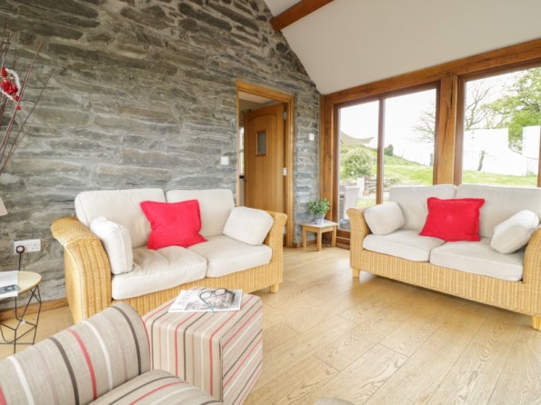 This wonderful, detached barn conversion is situated near Bylchau in County Conwy, amongst the owner's working farmland at the end of a farm track. There is a double bedroom on the ground floor, along with a second double bedroom and one with twin beds upstairs. In the utility is a shower room with a walk-in shower, and upstairs is a bathroom with a bath and hand-held shower. At the front of the property is a conservatory extension with comfy seating for five, and there is an open plan living area with a kitchen, a breakfast bar and a dining table, along with comfy seating for two in front of Bi-fold doors. The snug has exposed stone walls, wooden beams and a woodburning stove. Outside is off road parking for eight cars, a paved patio with furniture and a raised lawned garden. A fantastic holiday home for exploring North Wales.
