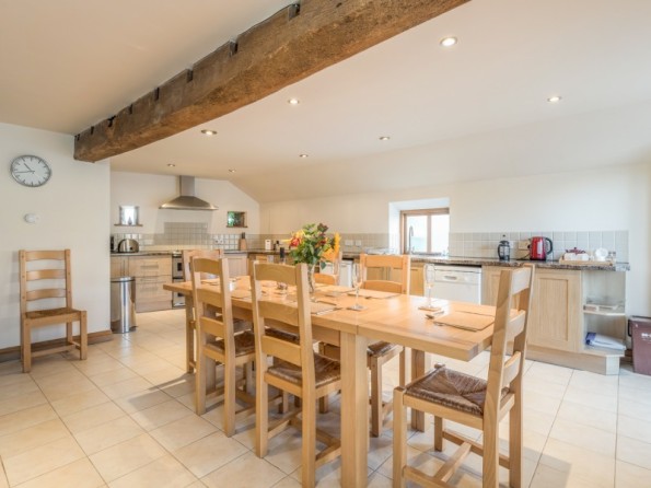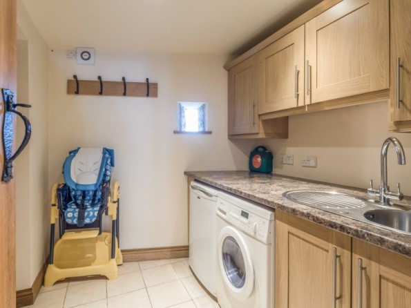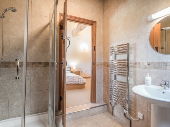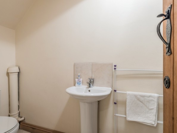 Three bedrooms: 2 x double (one with en-suite shower, basin and WC), 1 x family room with 1 double and 1 single. Bathroom with bath, double shower, basin and WC. Ground floor basin and WC. Kitchen with dining area, beams and exposed stone walls. Utility. Sitting room with woodburner.