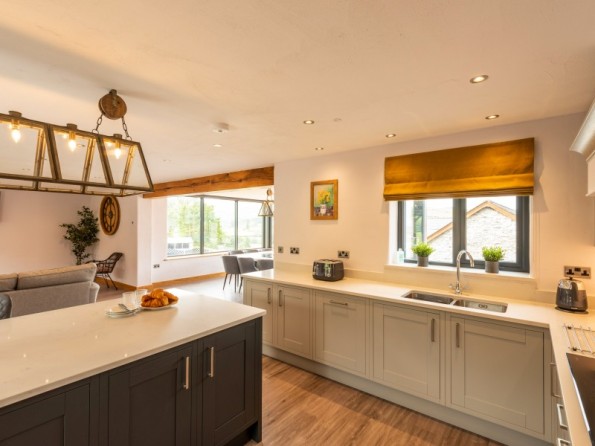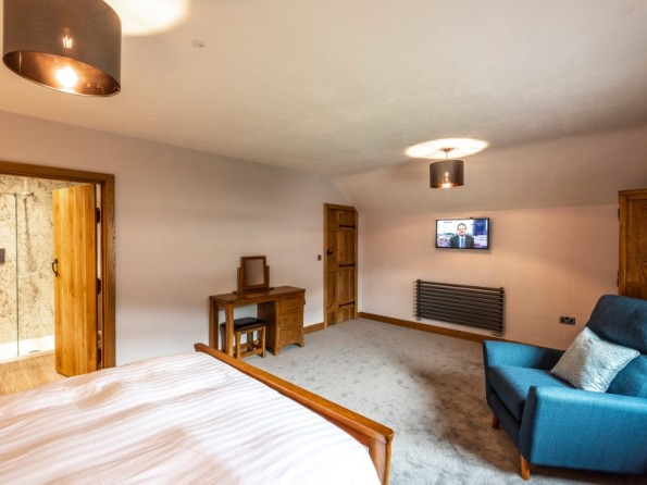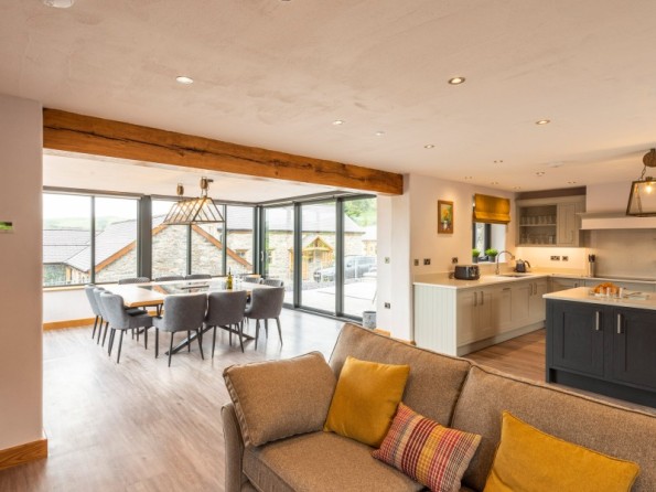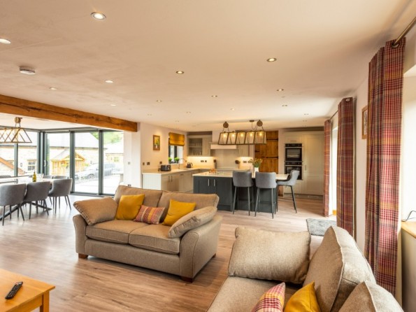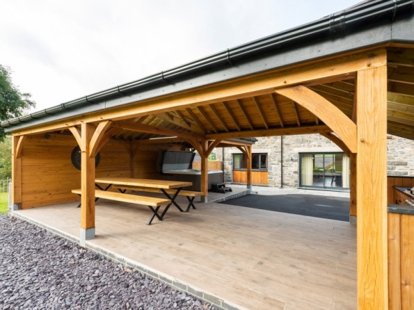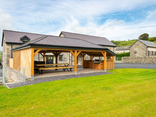 Granar is a detached farmhouse resting on the outskirts of Llangwm. It comes with five bedrooms, comprising of a ground-floor family bedroom with king-size bed and two single beds, two king-size bedroom with en-suite walk-in shower, basin and WC, a ground-floor king-size bedroom with en-suite wet room walk-in shower, basin and WC and a ground-floor king-size bedroom, together sleeping 12 people. Completing the interior is a ground-floor bathroom with walk-in shower, separate bath, basin and WC, a cloakroom with basin and WC, an open-plan living room with kitchen, dining area and sitting area, a utility and a first-floor sitting room. Outside, there is ample off-road parking, large lawn areas and a sheltered oak-built outdoor room with bench seating, barbecue and hot tub. Granar is a wonderful retreat to enjoy with all of your loved ones.