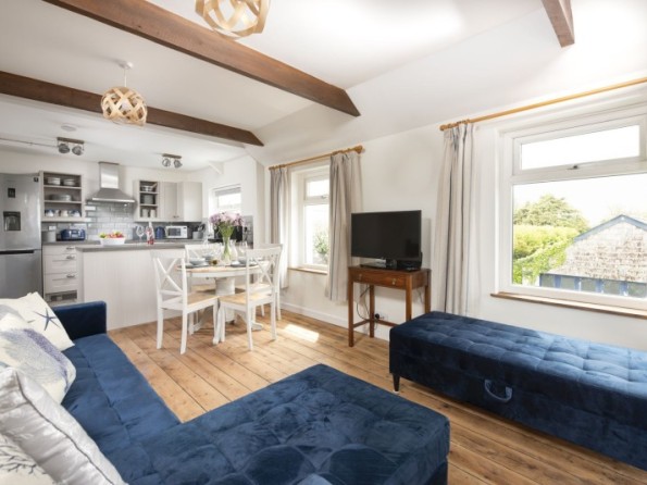 Greenfields Coach House is a beautiful property in the historic, coastal town of Marazion with a lovely balcony and stunning views towards the sea. The bright open planing living, kitchen and dining areas are tastefully designed, furnished and equipped, with subtle coast-inspired soft furnishings and decor throughout.