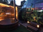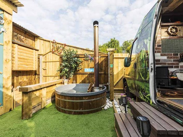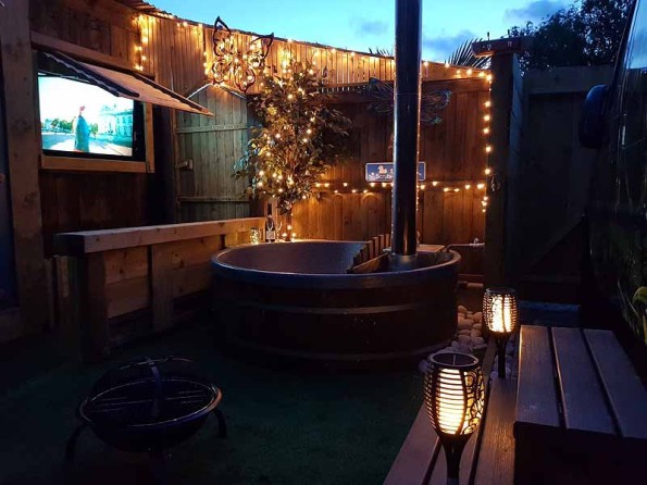 Gulliver is set in a private and secluded garden, complete with fire pit, wood fired hot tub, and an outside hot water shower. The outdoor TV nestled in the wall makes for perfect viewing whilst sitting in the hot tub.