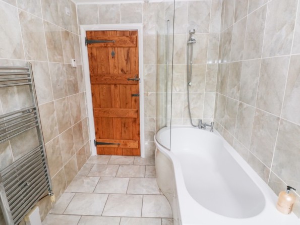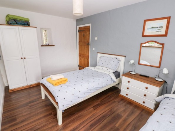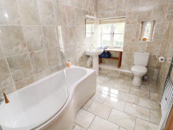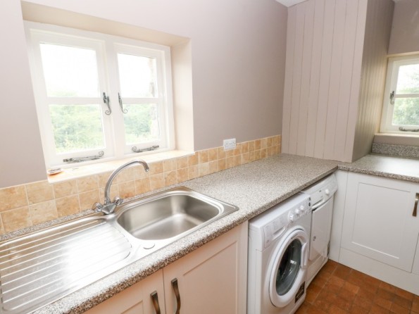 Three bedrooms. 1 x Ground floor double with TV and DVD. 1 x Ground floor twin with TV and DVD. 1 x First floor king size double with TV and DVD, en-suite shower room with separate shower, basin & WC. Ground floor bathroom with bath, shower over, basin & WC. Open plan living area with kitchen, dining and sitting area with wood burning stove (one basket of logs is supplied and more are available to buy locally). Utility room