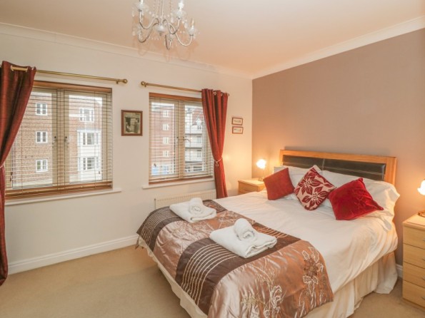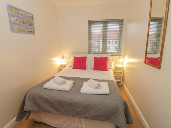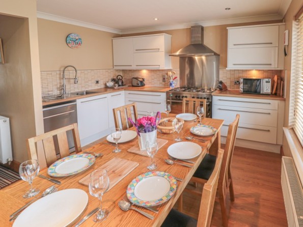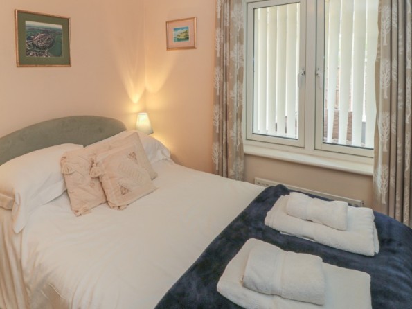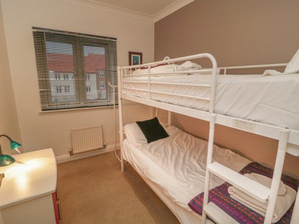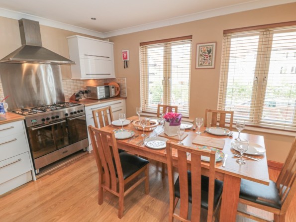 Over three floors. Four bedrooms: 1 x second floor king-size double with en-suite shower, basin and WC, 1 x second floor double, 1 x second floor adult bunk, 1 x ground floor double. Ground floor shower room with shower, basin and WC. First floor bathroom with bath, shower, basin and WC. First floor kitchen with dining area. Utility. First floor sitting room. Ground floor conservatory with doors to courtyard.