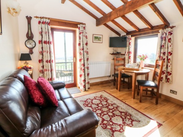 One double bedroom. Shower room with shower, basin and WC. Cosy beamed living room with fitted kitchen, dining and sitting areas. Hallway.