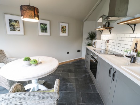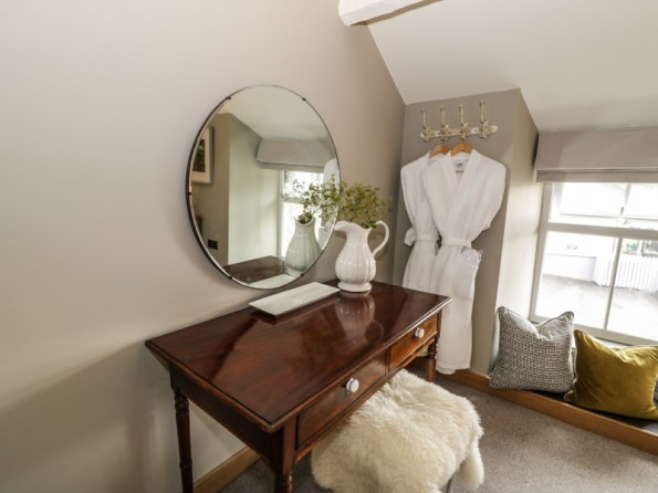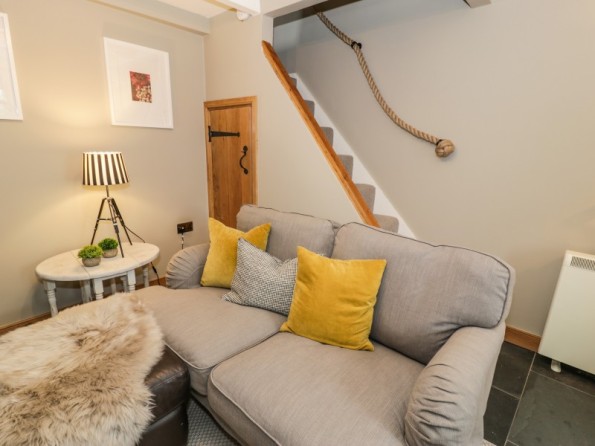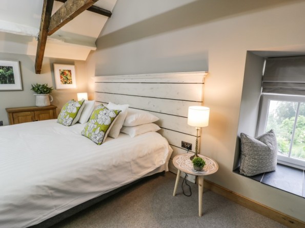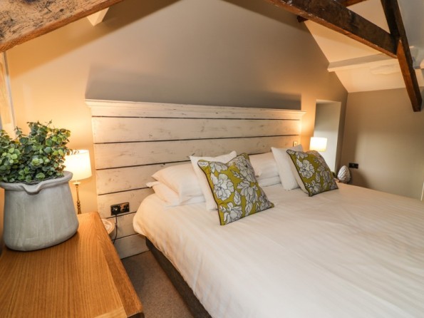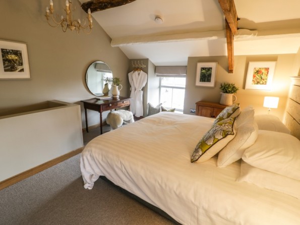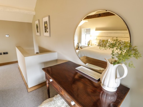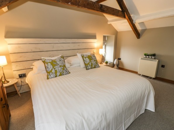 Over two floors. One super king-size room (zip/link, can be a twin on request). Ground floor Shower room with shower, basin and WC. Kitchen/diner. Sitting room with woodburning stove