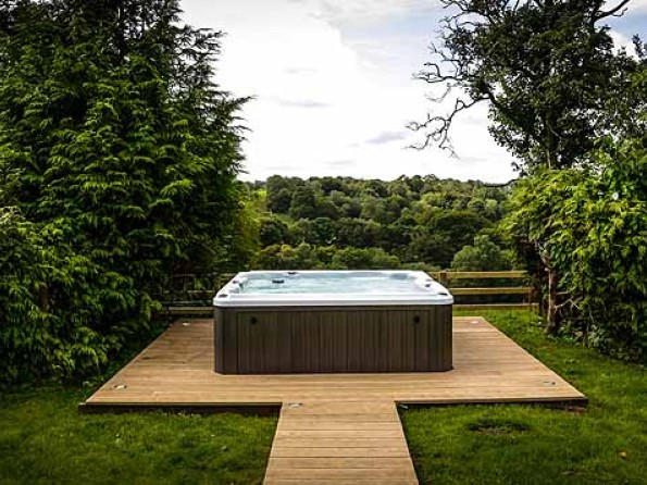 Each wing has a private hot tub with wonderful views of the wooded valley beneath the house. BBQ facilities are available.