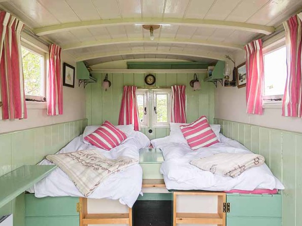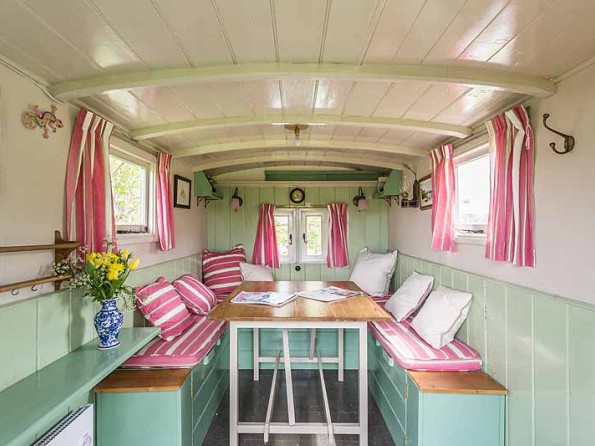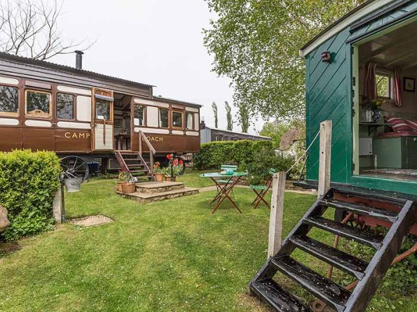 If you want to climb aboard into another era then you’ve come to the right place. Built over 100 years ago for the London, Brighton and South Coast railway, this camping coach and adjacent living van are full of character and original features, from brass luggage racks and leather window straps to a traditional ship’s porthole and a French art nouveau stove. They are also fully equipped with contemporary comforts and nearby you will find beaches, harbour towns, historic houses, family attractions, cafes and local pubs. This takes glamping to a whole new level.