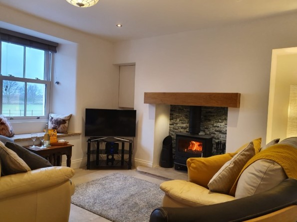 Built in 1679 and recently refurbished, Hill House holiday cottage oozes character and can sleep up to five people in three bedrooms. Downstairs the living room has comfortable seating, a large smart TV and a log burning stove, as well as a good collection of books and games. It also has a charming stone window seat.. The kitchen is modern and well stocked with all the necessary equipment, including oven, microwave, dishwasher, fridge freezer and washing machine. The dining area can seat up to six and has doors to the terrace with views over the lawn to the fells beyond. There is a downstairs wet room with shower, toilet and wash basin. Head up the original stone staircase to the bedrooms and an additional bathroom. The main bedroom has a king size bed, bedroom two is a twin (which can be a super king zip and link bed on request) with original timber floor and stone window seat and bedroom three is a single bedroom with wooden pegged beams. All of the bedrooms have high quality beds and bedding. There is a separate large shower room.