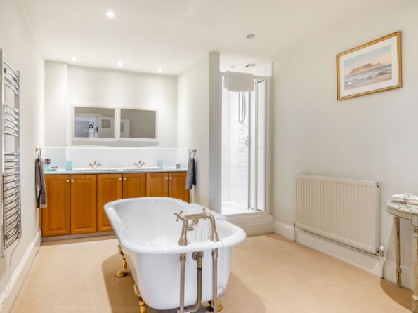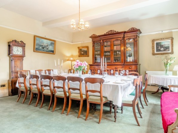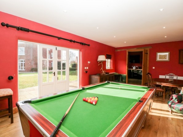 Over three floors. 10 bedrooms: 1 x super king-size with en-suite bathroom with a separate shower, double basin and WC, 1 x super king-size zip/link (can be twins on request), 1 x four poster super king-size, 2 x second floor super king-size zip/link (can be twins on request), 1 x second floor king-size antique brass bed with an en-suite freestanding bath, separate shower, double basin and WC, 2 x super king twin sip/link sharing Jack-and-Jill en-suite shower, basin and WC, 1 x king-size, 1 ground floor super king zip/link. Bathroom with a separate shower, basin and WC, second floor bathroom with a shower over bath, basin and WC. Kitchen with breakfast table. Utility with second dishwasher and washing machine. Dining room with open fire. Sitting room with woodburning stove and TV. First floor snug/playroom with a selection of toys. Games rooms with pool table, self contained kitchen and WC. Cloakroom with basin and WC and shower to serve downstairs bedroom.