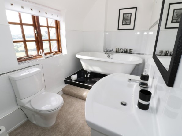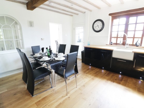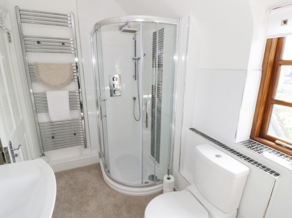 Four bedrooms: 1 x king-size double with en-suite shower, basin and WC, 1 x double with Juliet balcony, 1 x small double, 1 x twin. Bathroom with roll-top bath, separate shower, basin and WC. Kitchen with dining area (seats 8). Dining room (seats 4). Sitting room with woodburning stove.