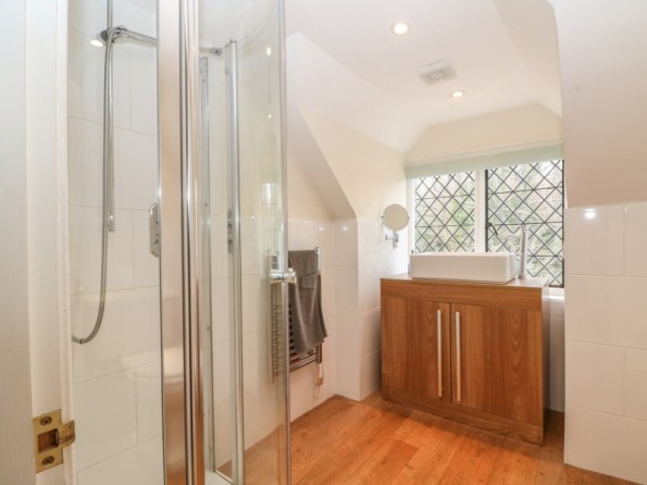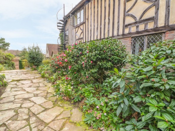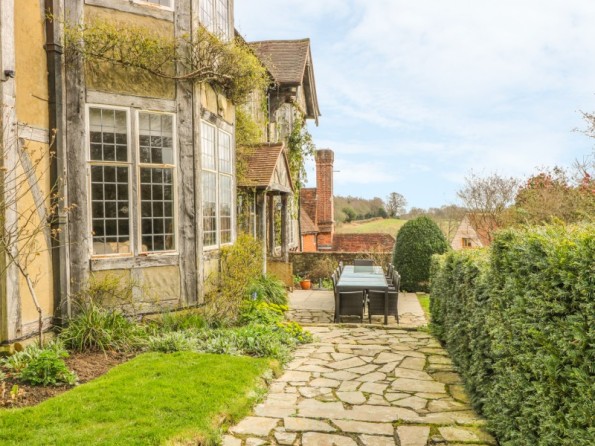 A medieval manor house in its own grounds with stunning views over the Weald of Kent. Seven bedrooms, six en-suites, woodburner, open fires, tennis court. Edenbridge 5 miles.