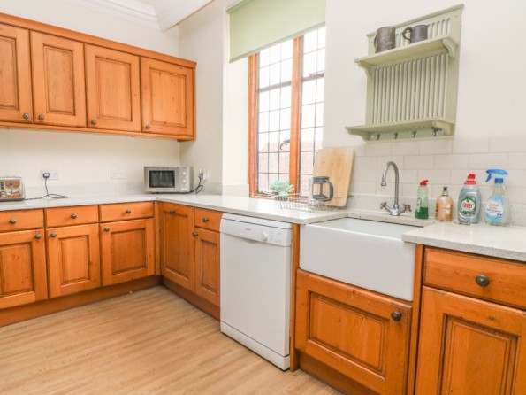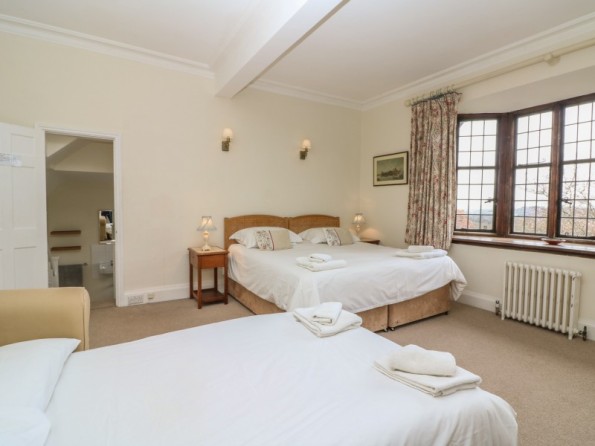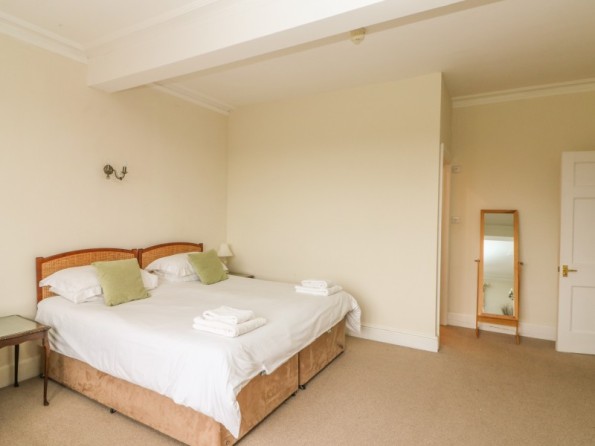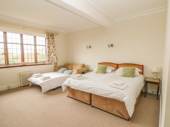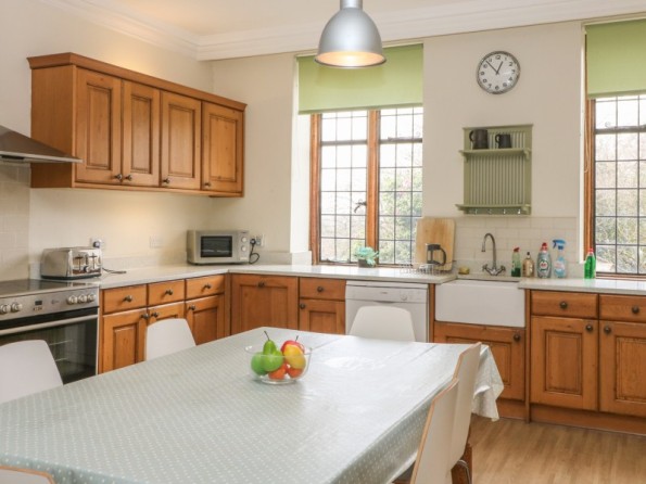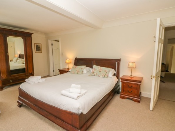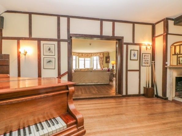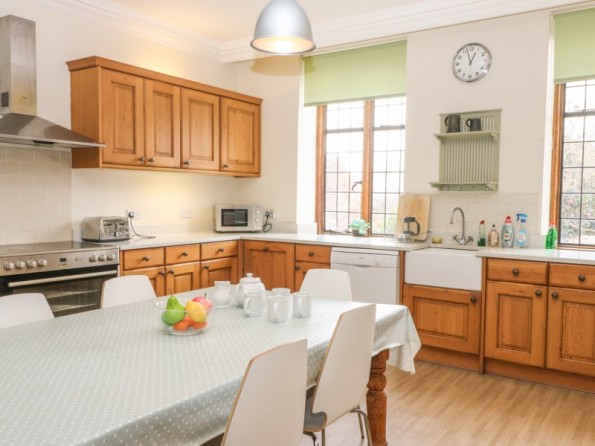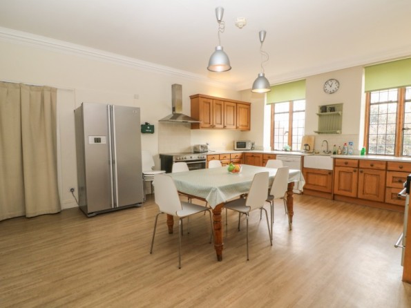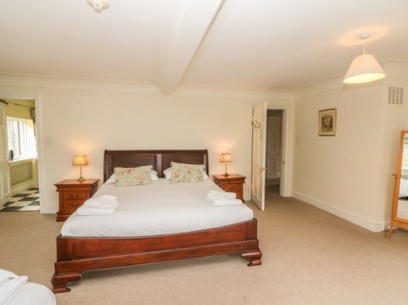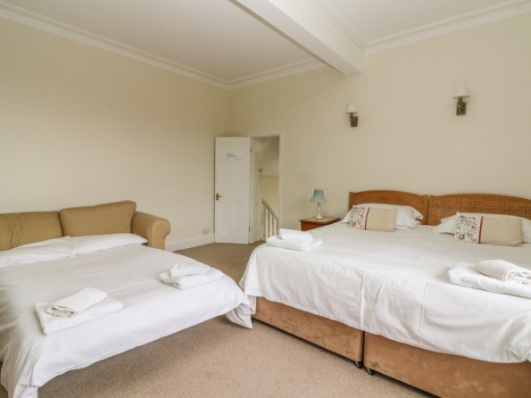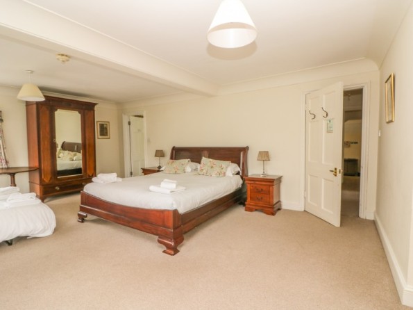 Over three floors. Seven bedrooms with TV (all super king-size doubles are zip/link, can be twin on request and five rooms have a sofa bed): 1 x super king-size double with en-suite bath, separate shower, basin and WC, 1 x super king-size double with three steps down to en-suite bath, shower over, basin and WC, 2 x super king-size double with en-suite shower, basin and WC, 2 x second floor super king-size double (one with en-suite shower, basin and WC), 1 x second floor double with en-suite shower, basin and WC. Second floor bathroom with bath, shower over, basin and WC. Two ground floor basin and WC. Kitchen with breakfast table (seats 6). Utility. Dining room (seats 20). Sitting room (seats 18) with open fire. Second floor snug with sofa bed. Library/games room with grand piano, half-size snooker table, table tennis, woodburner and open fire. Hall with seating area. Reading area on landing.