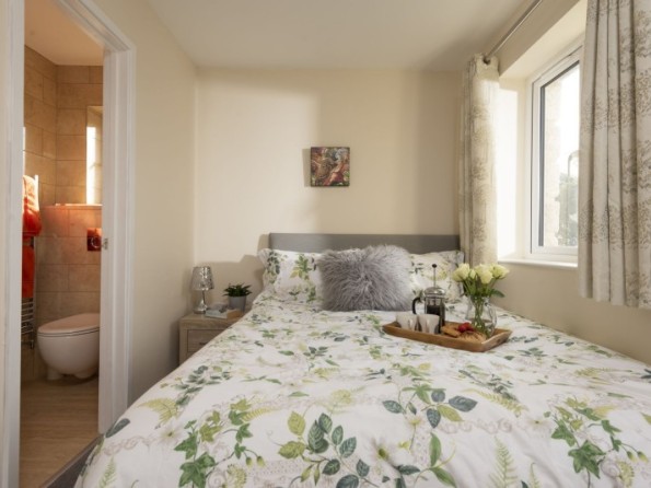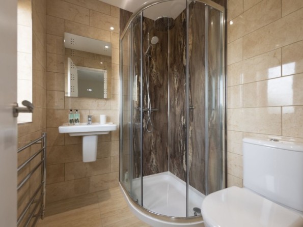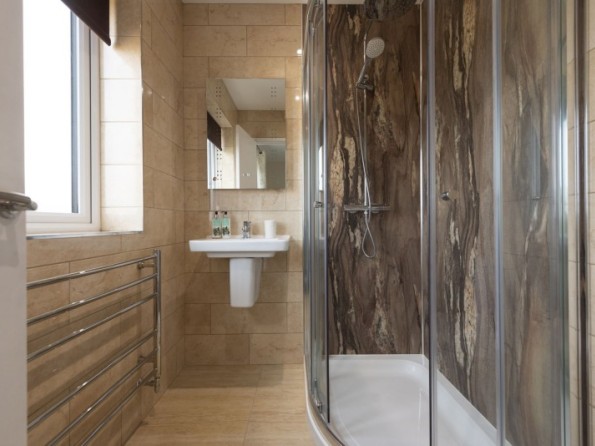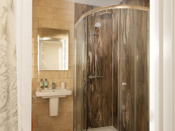 - Heated towel rail, under floor heating, a large shower with raindrop and hand held heads, WC and wash basin with a lit mirror.