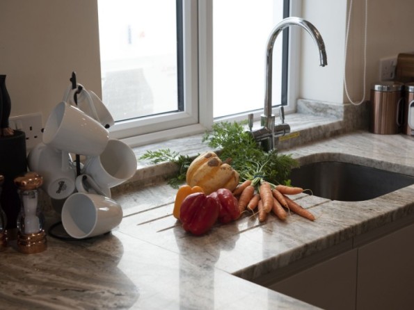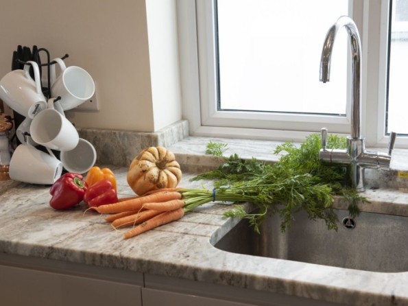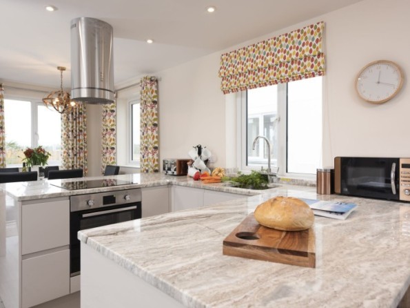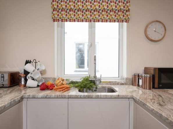 - Modern kitchen with electric oven and induction hob, microwave, toaster, fridge with ice compartment and dishwasher