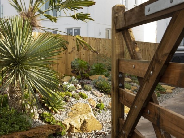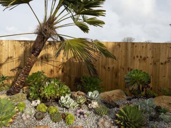 Beautifully designed by the owners and RHS Hampton Court Gold medal winning designers there's a level garden which is enclosed and features a vertical wall of succulents as well as a rockery.